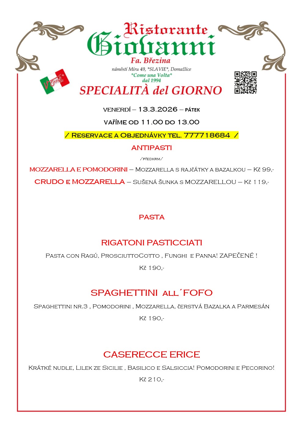 Polední menu - vaříme Úterý až Pátek od 11:00 do 13:00.